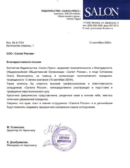 Компания «Салют России 24» — лидер на рынке пиротехники с 20-летним опытом — создаёт яркие моменты для тысяч мероприятий по всей России. Наши партнёры — рестораны, клубы, event-агентства и организаторы городских праздников — доверяют нам, потому что:
